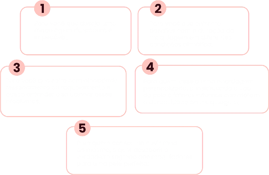 Você aprenderá técnicas inovadoras e eficientes para garantir uma maquiagem de longa duração, sem comprometer a saúde da sua pele.